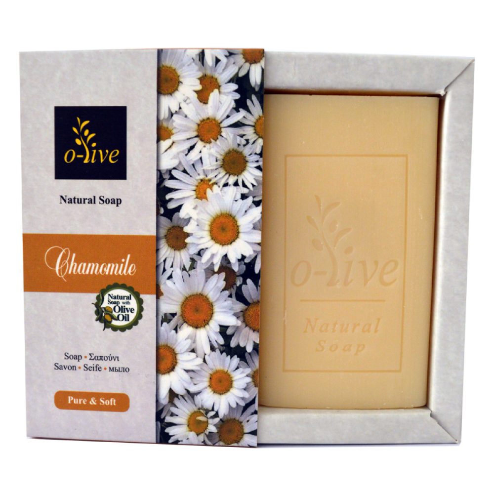 Chamomile soap with extra virgin olive oil. Suitable for all skin types, with soothing properties.