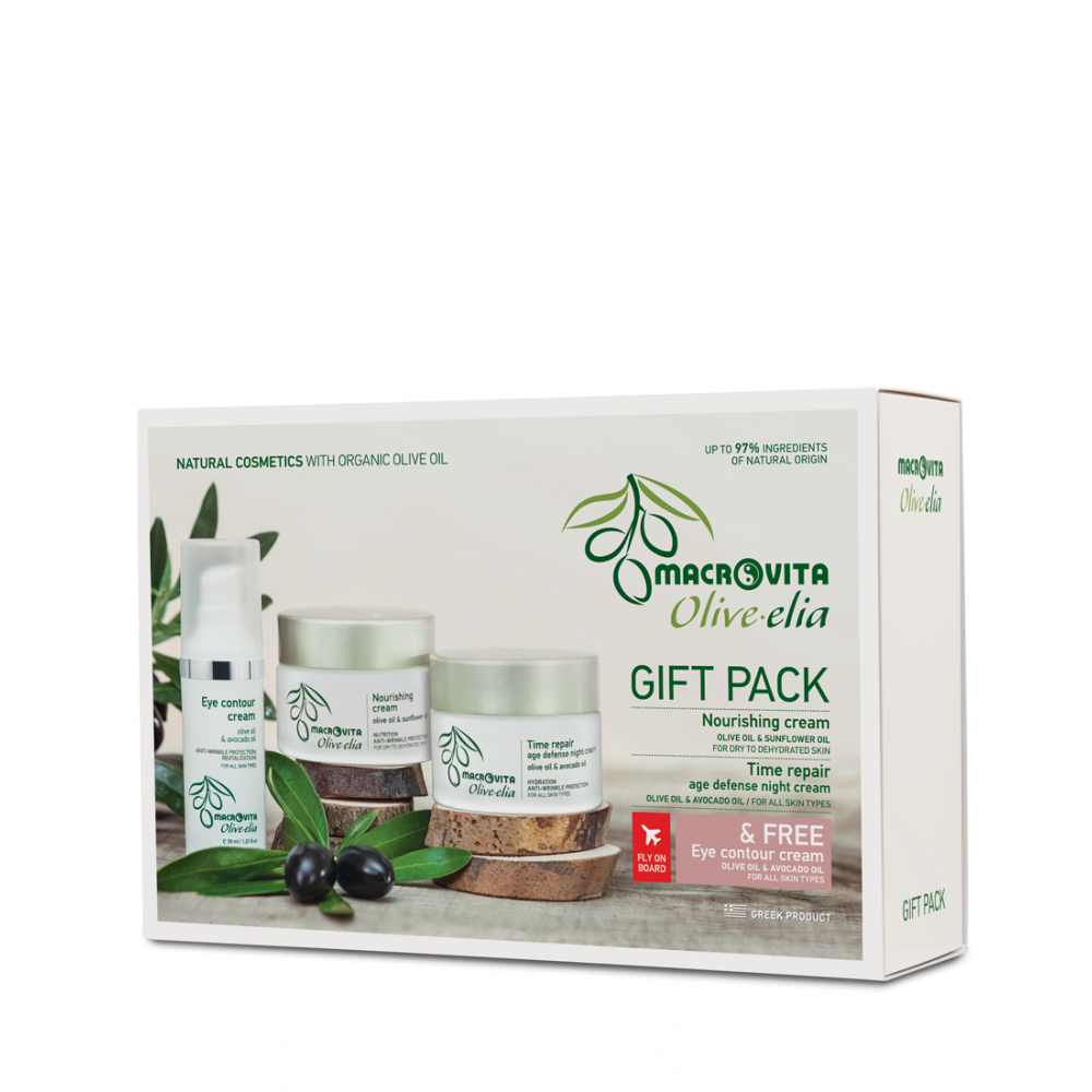Complete face care system. With the purchase of Nourishing cream for dry to dehydrated skin and Time repair age defense night cream, get as a gift the Eye contour cream.